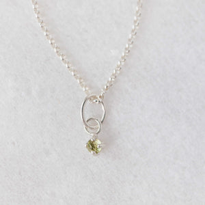 This stunning peridot gemstone charm features pale green coloured 3mm rose cut Arizona peridot. Peridot supports intuition and brings calm and quiet strength to the wearer. Forged in fire, peridot is one of the only stones on the planet that only exists in one colour tone. Wear this gemstone charm to ground yourself in mindfulness and intention. The rose cut peridot we use to handcraft this pendant adds a subtle sparkle to everyday wear. This beautiful, handcrafted charm makes a gorgeous August birthstone pendant or family necklace.